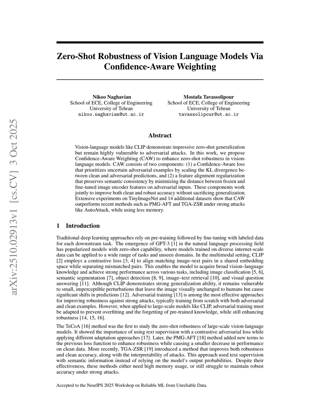 Zero-Shot Robustness of Vision Language Models Via Confidence-Aware Weighting