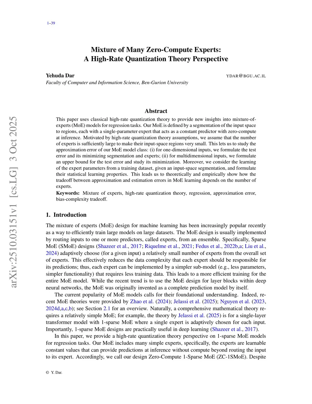 Mixture of Many Zero-Compute Experts: A High-Rate Quantization Theory Perspective