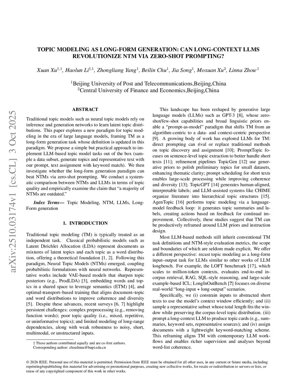 Topic Modeling as Long-Form Generation: Can Long-Context LLMs revolutionize NTM via Zero-Shot Prompting?