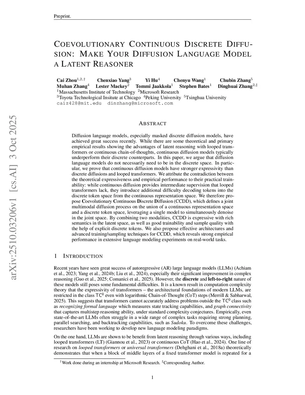 Coevolutionary Continuous Discrete Diffusion: Make Your Diffusion Language Model a Latent Reasoner