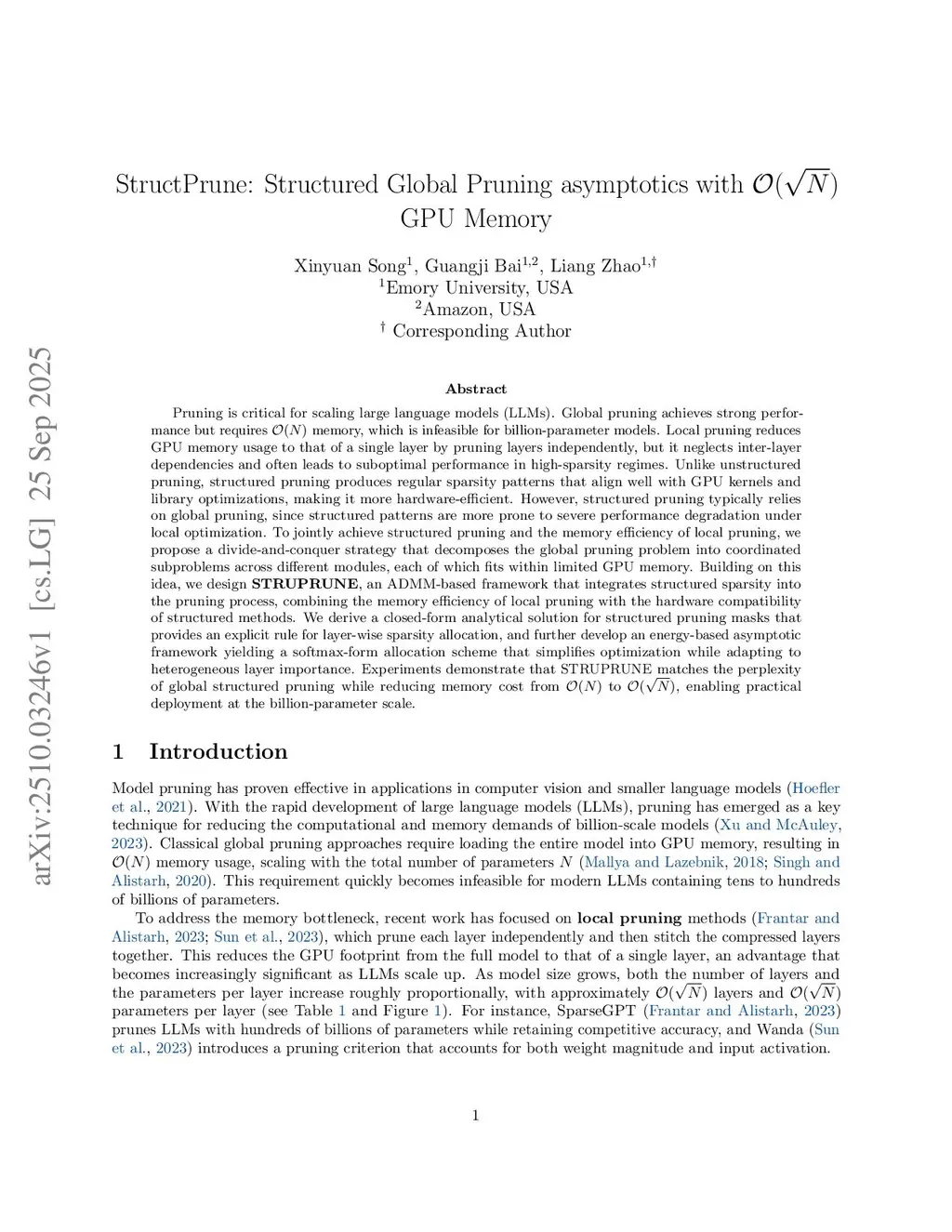 StructPrune: Structured Global Pruning asymptotics with GPU Memory