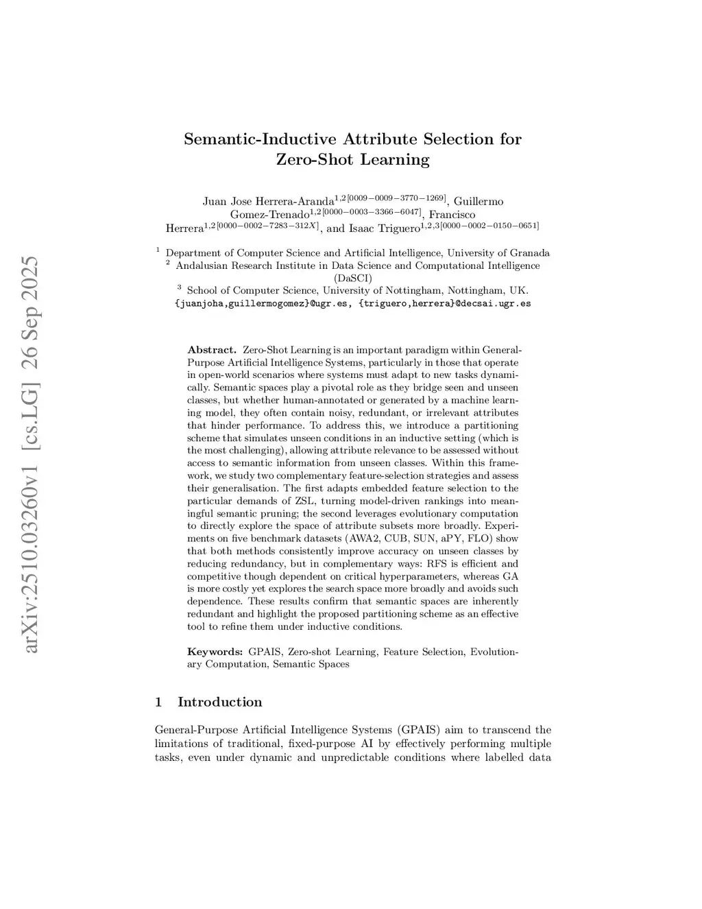 Zero-Shot Learning is an important paradigm within General-Purpose Artificial Intelligence Systems, particularly in those that operate in open-world scenarios where systems must adapt to new tasks dynamically. Semantic spaces play a pivotal role as they bridge seen and unseen classes, but whether human-annotated or generated by a machine learning model, they often contain noisy, redundant, or irrelevant attributes that hinder performance. To address this, we introduce a partitioning scheme that simulates unseen conditions in an inductive setting (which is the most challenging), allowing attribute relevance to be assessed without access to semantic information from unseen classes. Within this framework, we study two complementary feature-selection strategies and assess their generalisation. The first adapts embedded feature selection to the particular demands of ZSL, turning model-driven rankings into meaningful semantic pruning; the second leverages evolutionary computation to directly explore the space of attribute subsets more broadly. Experiments on five benchmark datasets (AWA2, CUB, SUN, aPY, FLO) show that both methods consistently improve accuracy on unseen classes by reducing redundancy, but in complementary ways: RFS is efficient and competitive though dependent on critical hyperparameters, whereas GA is more costly yet explores the search space more broadly and avoids such dependence. These results confirm that semantic spaces are inherently redundant and highlight the proposed partitioning scheme as an effective tool to refine them under inductive conditions.