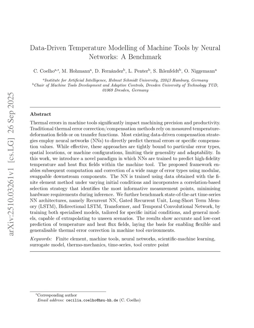 Thermal errors in machine tools significantly impact machining precision and productivity. Traditional thermal error correction/compensation methods rely on measured temperature-deformation fields or on transfer functions. Most existing data-driven compensation strategies employ neural networks (NNs) to directly predict thermal errors or specific compensation values. While effective, these approaches are tightly bound to particular error types, spatial locations, or machine configurations, limiting their generality and adaptability. In this work, we introduce a novel paradigm in which NNs are trained to predict high-fidelity temperature and heat flux fields within the machine tool. The proposed framework enables subsequent computation and correction of a wide range of error types using modular, swappable downstream components. The NN is trained using data obtained with the finite element method under varying initial conditions and incorporates a correlation-based selection strategy that identifies the most informative measurement points, minimising hardware requirements during inference. We further benchmark state-of-the-art time-series NN architectures, namely Recurrent NN, Gated Recurrent Unit, Long-Short Term Memory (LSTM), Bidirectional LSTM, Transformer, and Temporal Convolutional Network, by training both specialised models, tailored for specific initial conditions, and general models, capable of extrapolating to unseen scenarios. The results show accurate and low-cost prediction of temperature and heat flux fields, laying the basis for enabling flexible and generalisable thermal error correction in machine tool environments.