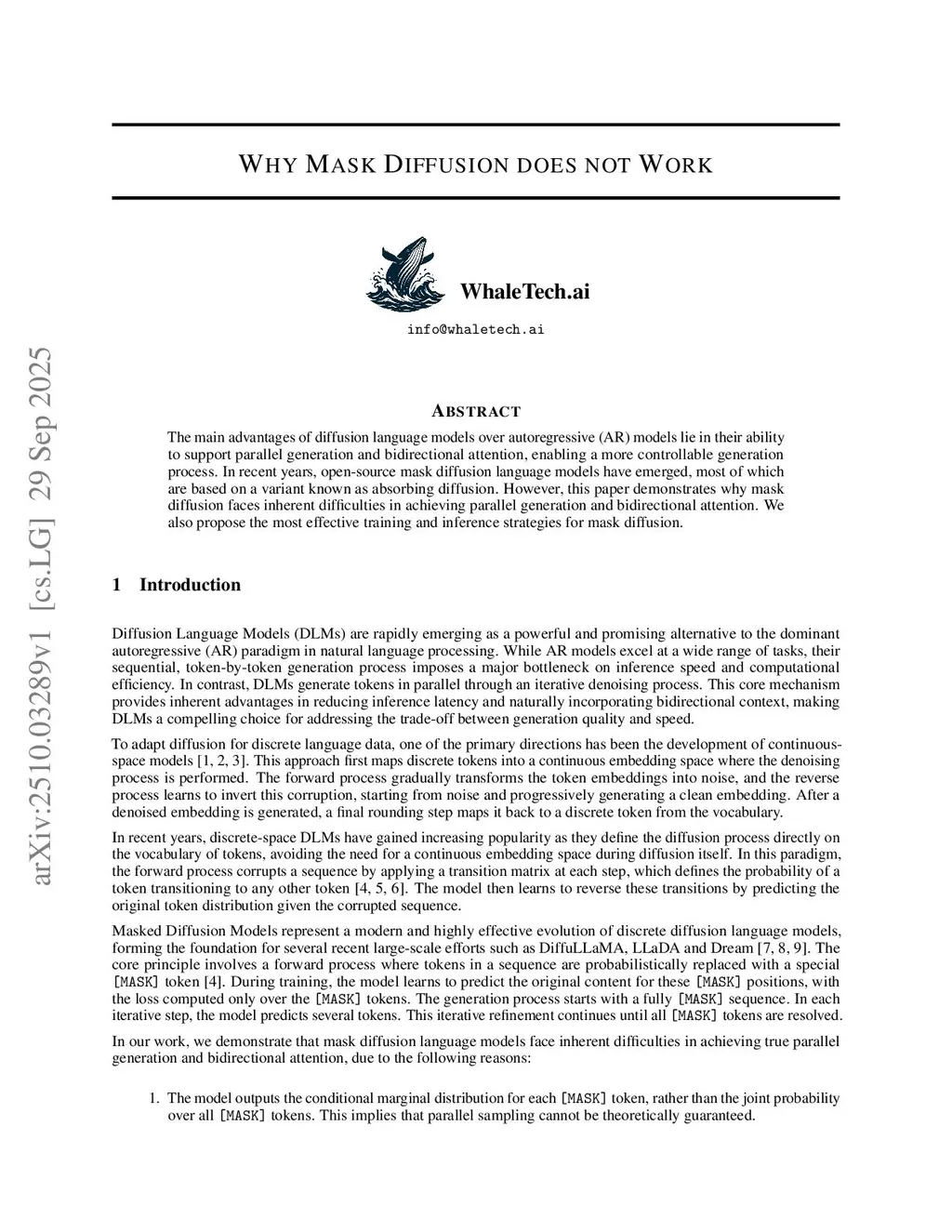 The main advantages of diffusion language models over autoregressive (AR) models lie in their ability to support parallel generation and bidirectional attention, enabling a more controllable generation process. In recent years, open-source mask diffusion language models have emerged, most of which are based on a variant known as absorbing diffusion. However, this paper demonstrates why mask diffusion faces inherent difficulties in achieving parallel generation and bidirectional attention. We also propose the most effective training and inference strategies for mask diffusion.
