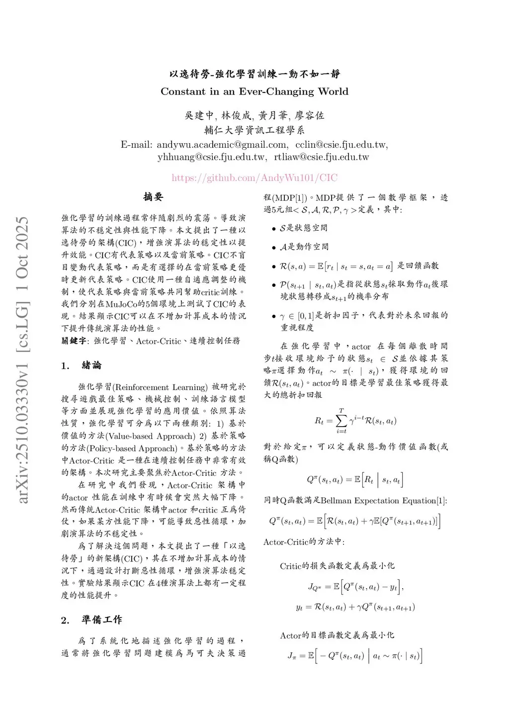 The training process of reinforcement learning often suffers from severe oscillations, leading to instability and degraded performance. In this paper, we propose a Constant in an Ever-Changing World (CIC) framework that enhances algorithmic stability to improve performance. CIC maintains both a representative policy and a current policy. Instead of updating the representative policy blindly, CIC selectively updates it only when the current policy demonstrates superiority. Furthermore, CIC employs an adaptive adjustment mechanism, enabling the representative and current policies to jointly facilitate critic training. We evaluate CIC on five MuJoCo environments, and the results show that CIC improves the performance of conventional algorithms without incurring additional computational cost.