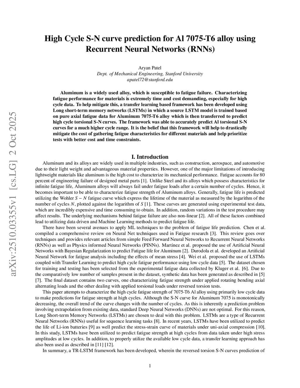 High Cycle S-N curve prediction for Al 7075-T6 alloy using Recurrent Neural Networks (RNNs)