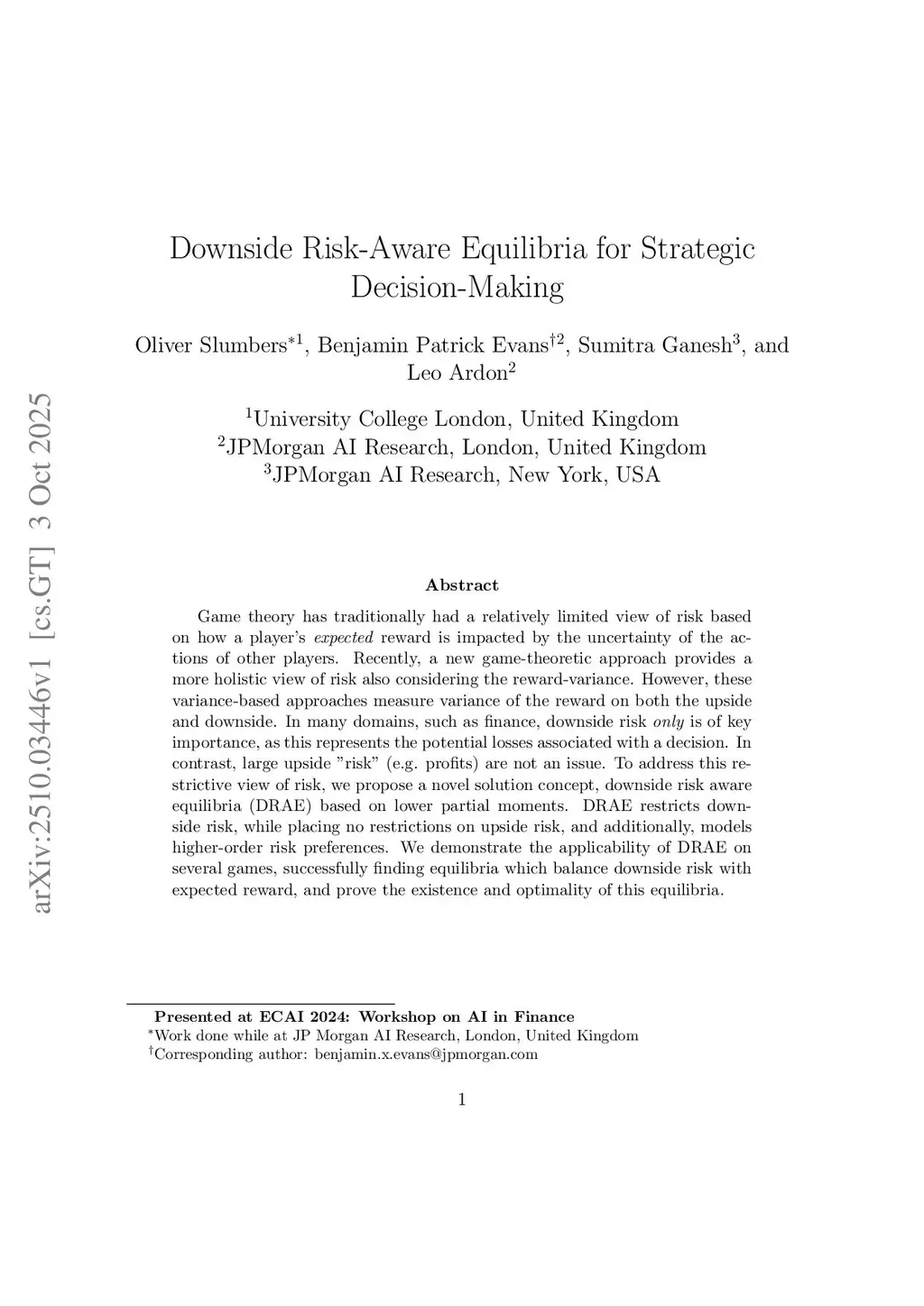 Game theory has traditionally had a relatively limited view of risk based on how a player's expected reward is impacted by the uncertainty of the actions of other players. Recently, a new game-theoretic approach provides a more holistic view of risk also considering the reward-variance. However, these variance-based approaches measure variance of the reward on both the upside and downside. In many domains, such as finance, downside risk only is of key importance, as this represents the potential losses associated with a decision. In contrast, large upside "risk" (e.g. profits) are not an issue. To address this restrictive view of risk, we propose a novel solution concept, downside risk aware equilibria (DRAE) based on lower partial moments. DRAE restricts downside risk, while placing no restrictions on upside risk, and additionally, models higher-order risk preferences. We demonstrate the applicability of DRAE on several games, successfully finding equilibria which balance downside risk with expected reward, and prove the existence and optimality of this equilibria.