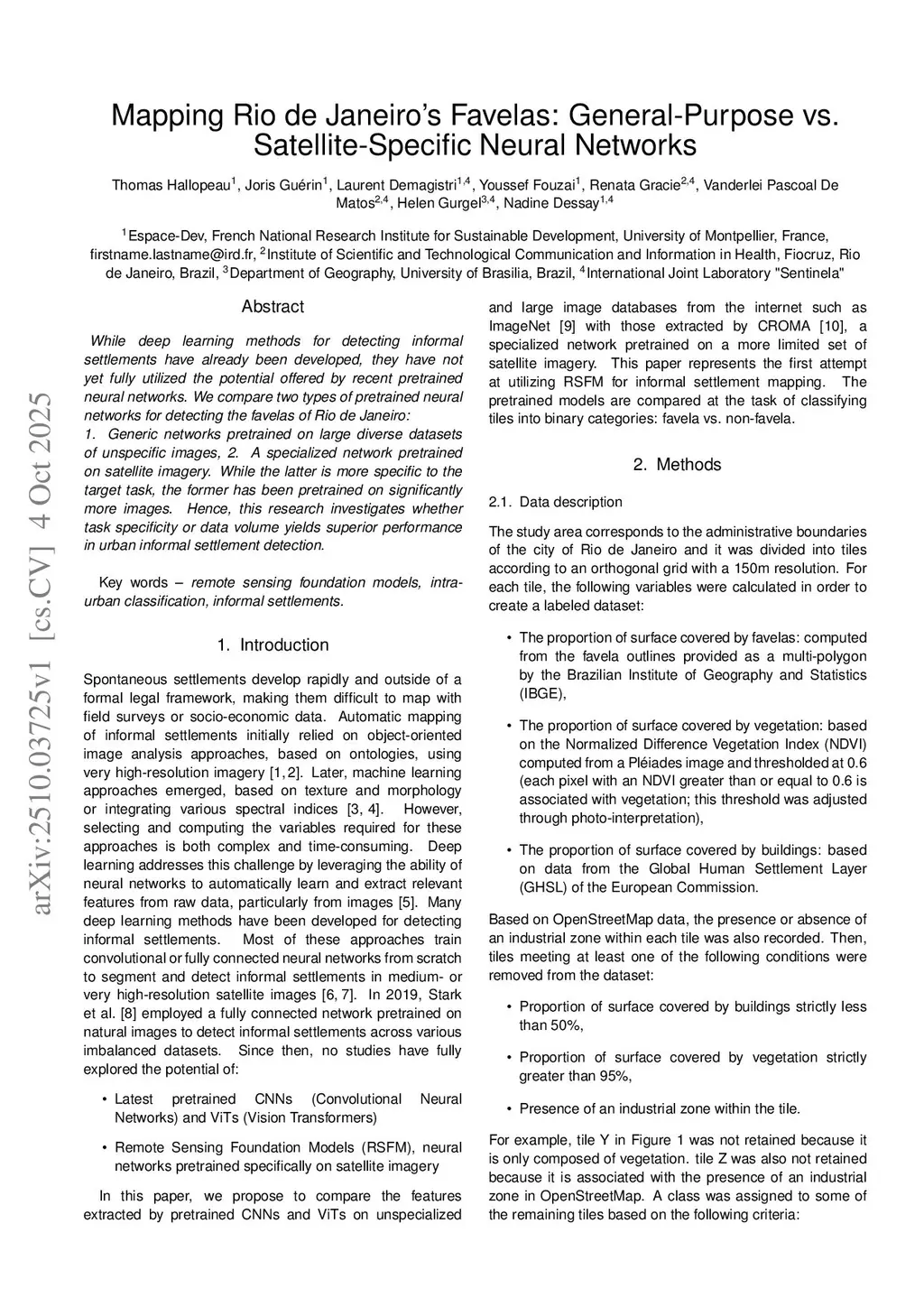 Mapping Rio de Janeiro's favelas: general-purpose vs. satellite-specific neural networks