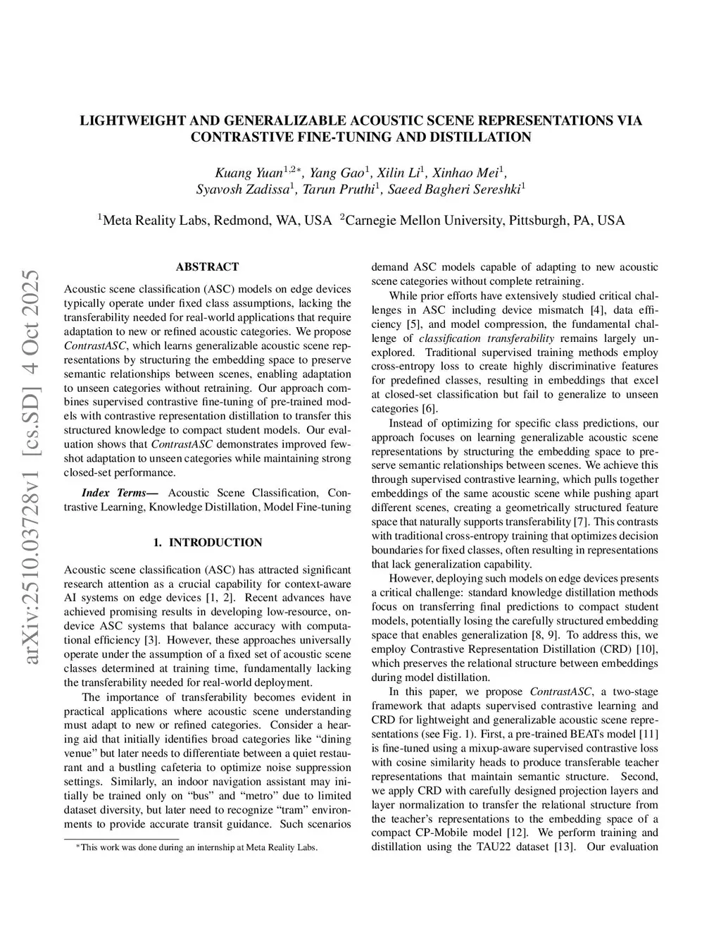 Lightweight and Generalizable Acoustic Scene Representations via Contrastive Fine-Tuning and Distillation