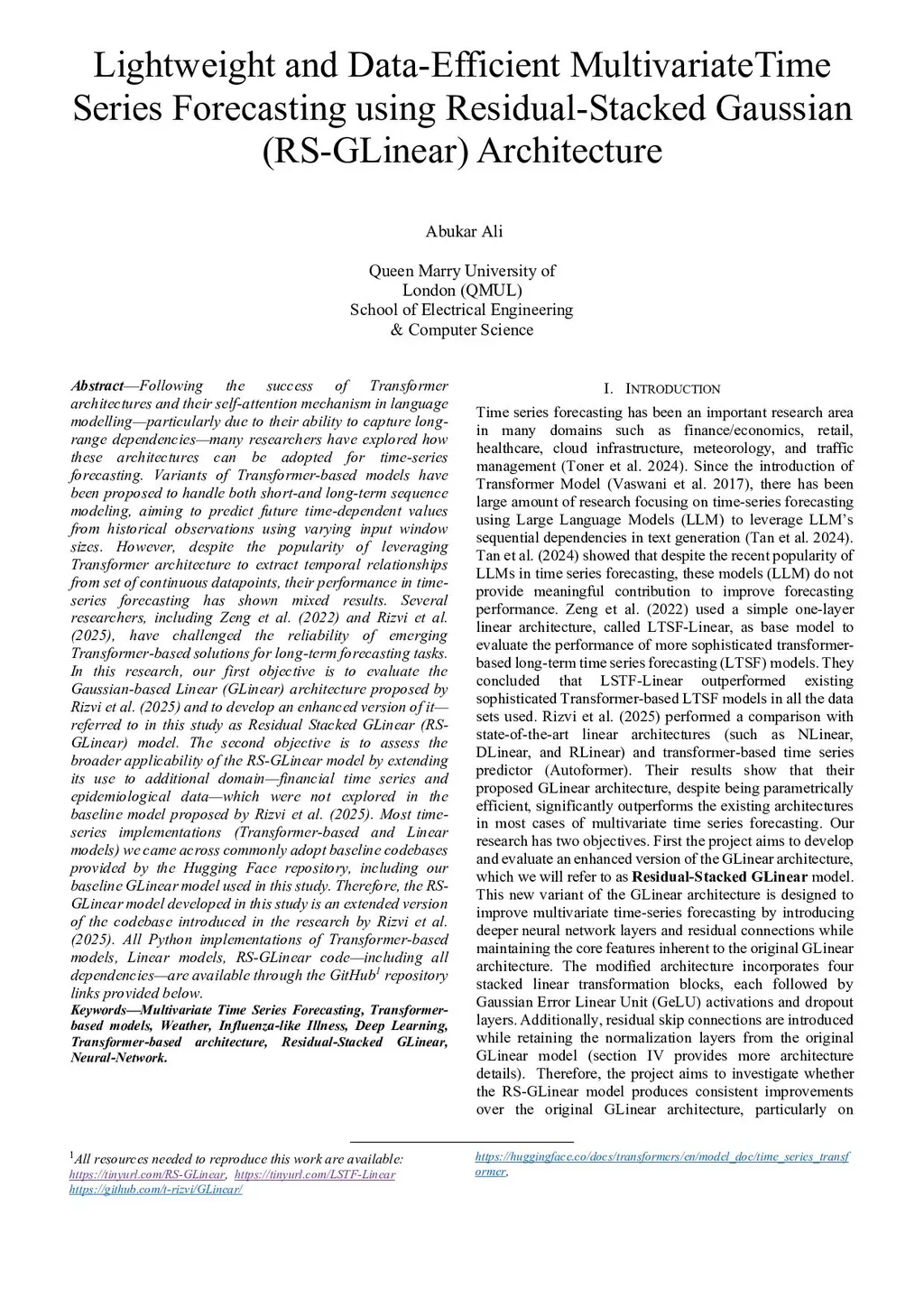 Following the success of Transformer architectures in language modeling, particularly their ability to capture long-range dependencies, researchers have explored how these architectures can be adapted for time-series forecasting. Transformer-based models have been proposed to handle both short- and long-term dependencies when predicting future values from historical data. However, studies such as those by Zeng et al. (2022) and Rizvi et al. (2025) have reported mixed results in long-term forecasting tasks. In this work, we evaluate the Gaussian-based Linear architecture introduced by Rizvi et al. (2025) and present an enhanced version called the Residual Stacked Gaussian Linear (RSGL) model. We also investigate the broader applicability of the RSGL model in additional domains, including financial time series and epidemiological data. Experimental results show that the RSGL model achieves improved prediction accuracy and robustness compared to both the baseline Gaussian Linear and Transformer-based models.