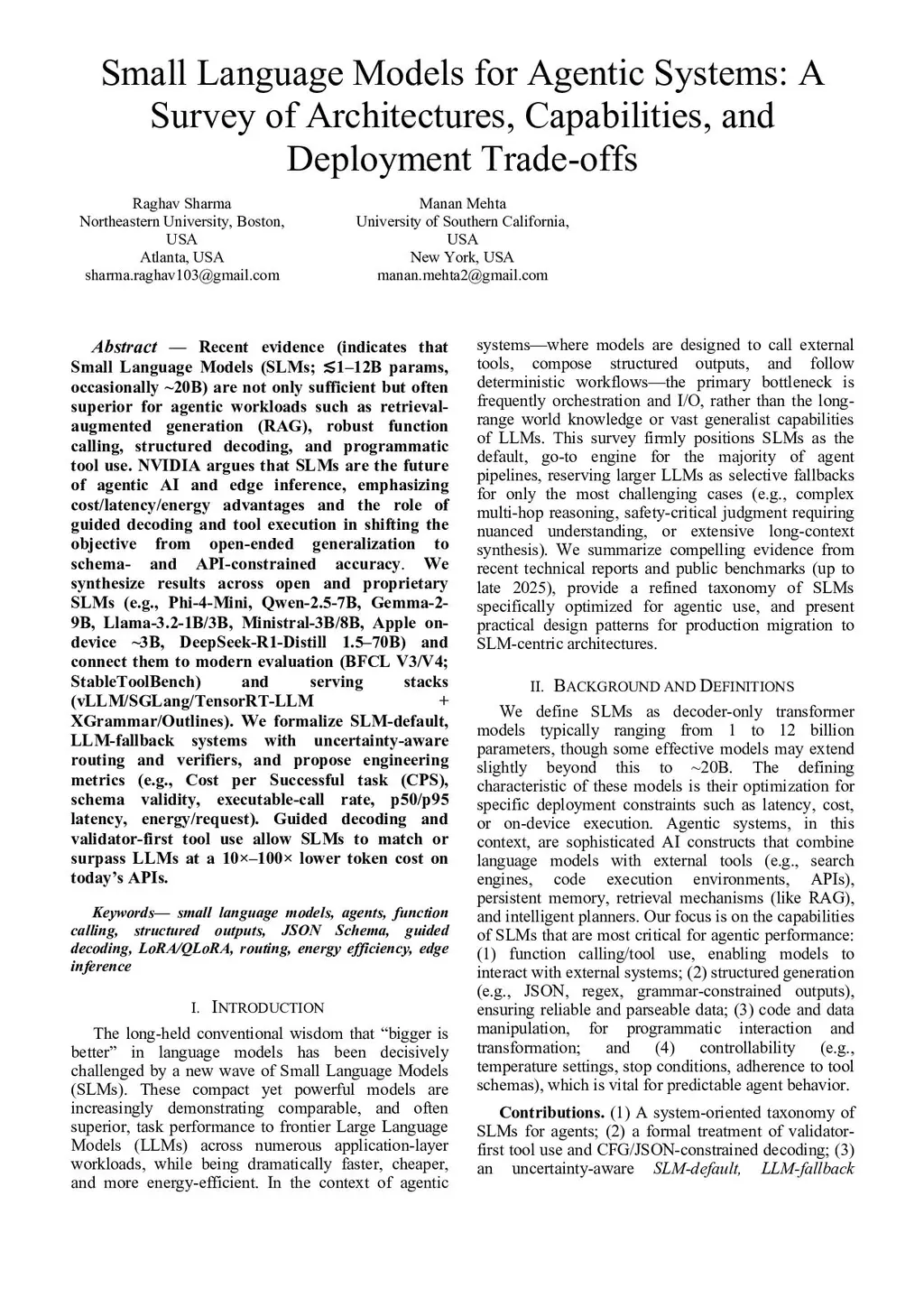 Small language models (SLMs; 1-12B params, sometimes up to 20B) are sufficient and often superior for agentic workloads where the objective is schema- and API-constrained accuracy rather than open-ended generation. We synthesize recent evidence across open and proprietary SLMs (Phi-4-Mini, Qwen-2.5-7B, Gemma-2-9B, Llama-3.2-1B/3B, Ministral-3B/8B, Apple on-device 3B, DeepSeek-R1-Distill) and connect it to modern evaluations (BFCL v3/v4, StableToolBench) and serving stacks (vLLM, SGLang, TensorRT-LLM) paired with guided decoding libraries (XGrammar, Outlines). We formalize SLM-default, LLM-fallback systems with uncertainty-aware routing and verifier cascades, and propose engineering metrics that reflect real production goals: cost per successful task (CPS), schema validity rate, executable call rate, p50/p95 latency, and energy per request. Guided decoding, strict JSON Schema outputs, and validator-first tool execution close much of the capability gap with larger models and often let SLMs match or surpass LLMs on tool use, function calling, and RAG at 10x-100x lower token cost with materially better latency and energy. We provide design patterns for agent stacks that prioritize SLMs: schema-first prompting, type-safe function registries, confidence scoring with verifier rollups, and lightweight adaptation via LoRA/QLoRA. We also delineate limits where fallback remains valuable (open-domain reasoning and some long-horizon planning). The result is a practical blueprint for building fast, inexpensive, and reliable agents that default to SLMs while preserving headroom with targeted LLM assistance.Keywords: small language models, agents, function calling, structured outputs, JSON Schema, guided decoding, LoRA/QLoRA, routing, energy efficiency, edge inference