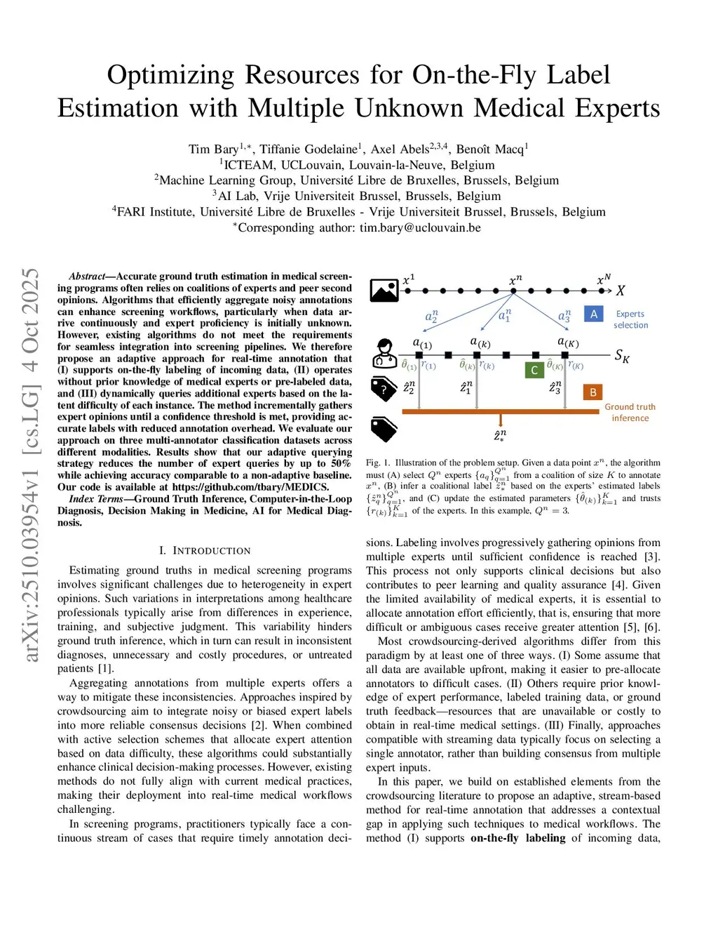 Optimizing Resources for On-the-Fly Label Estimation with Multiple Unknown Medical Experts