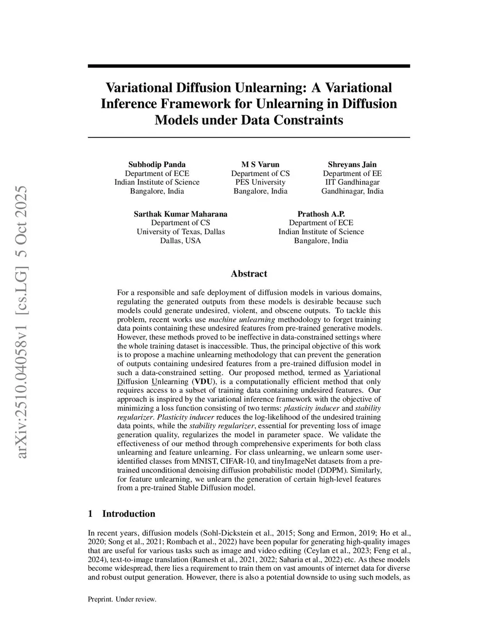 Variational Diffusion Unlearning: A Variational Inference Framework for Unlearning in Diffusion Models under Data Constraints