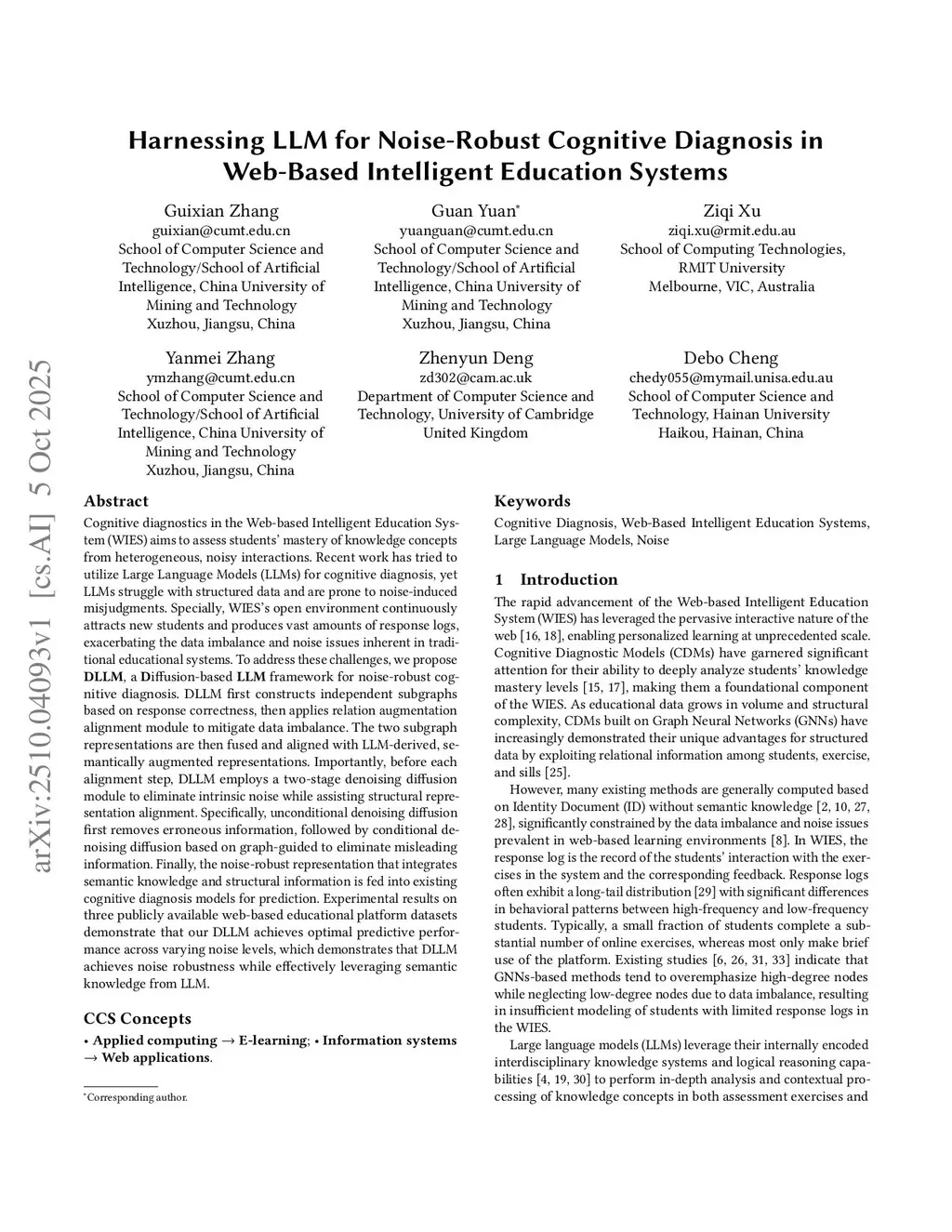 Harnessing LLM for Noise-Robust Cognitive Diagnosis in Web-Based Intelligent Education Systems