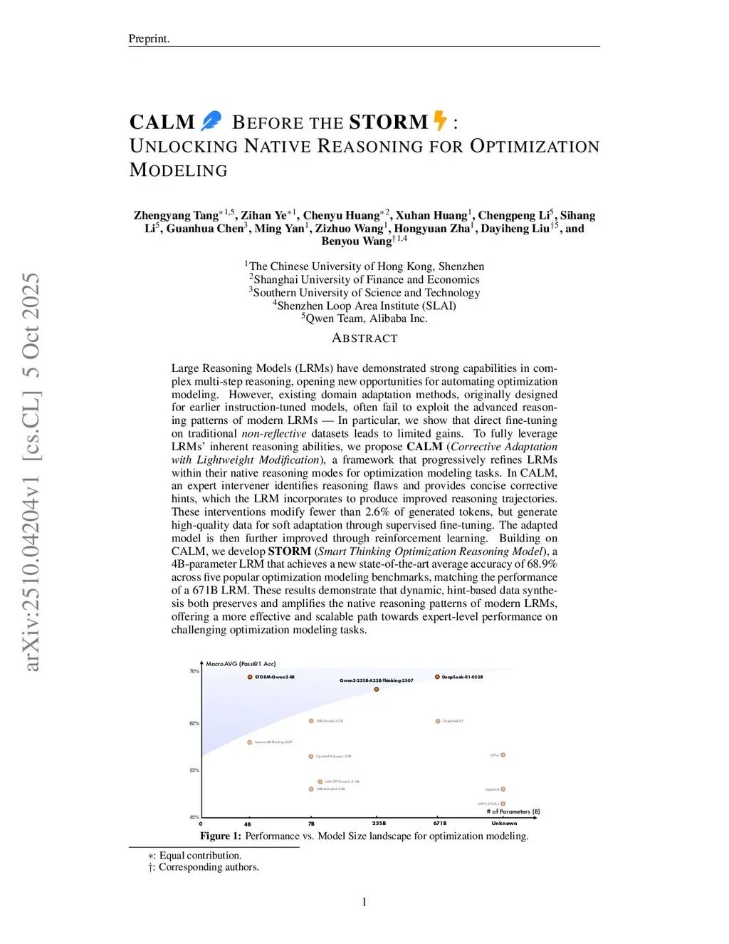 CALM Before the STORM: Unlocking Native Reasoning for Optimization Modeling