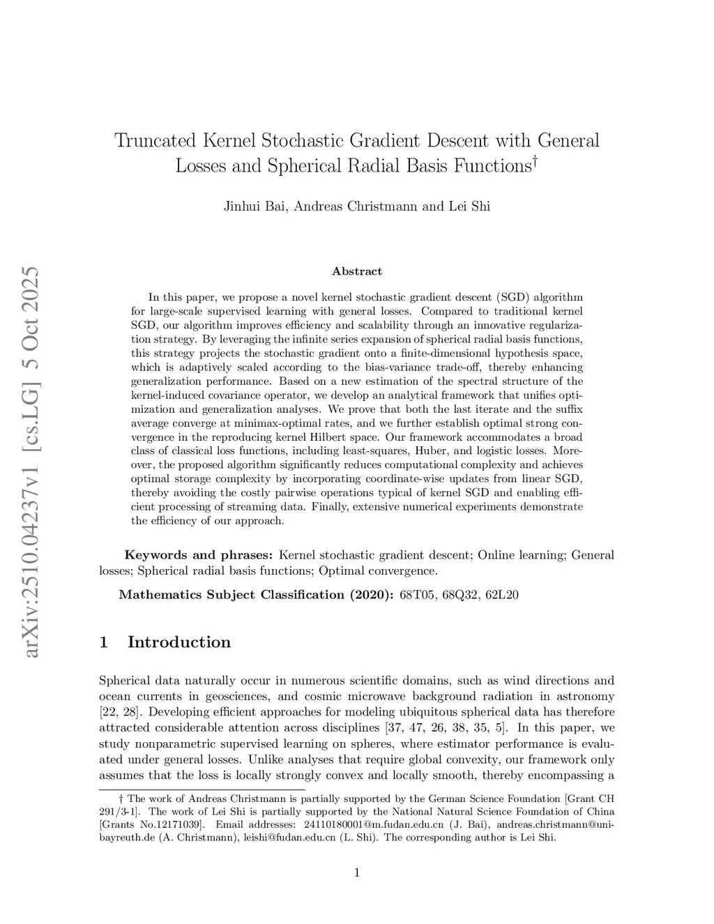 Truncated Kernel Stochastic Gradient Descent with General Losses and Spherical Radial Basis Functions