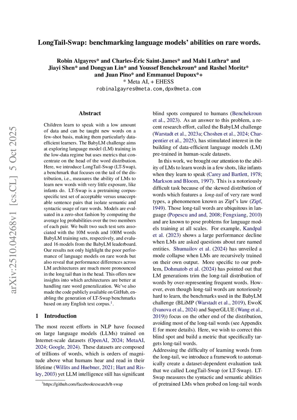 LongTail-Swap: benchmarking language models' abilities on rare words