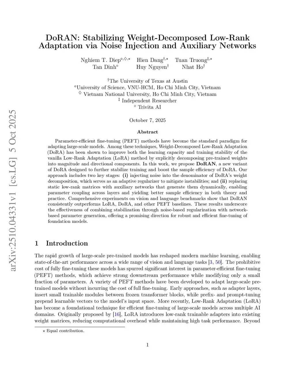 DoRAN: Stabilizing Weight-Decomposed Low-Rank Adaptation via Noise Injection and Auxiliary Networks