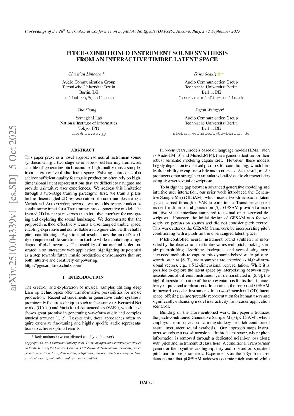Pitch-Conditioned Instrument Sound Synthesis From an Interactive Timbre Latent Space