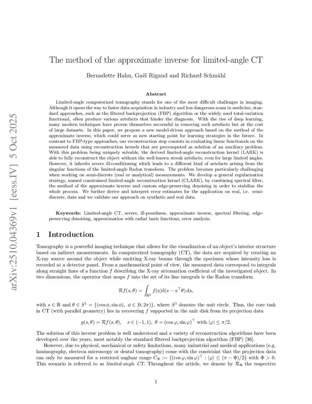 Limited-angle computerized tomography stands for one of the most difficult challenges in imaging. Although it opens the way to faster data acquisition in industry and less dangerous scans in medicine, standard approaches, such as the filtered backprojection (FBP) algorithm or the widely used total-variation functional, often produce various artefacts that hinder the diagnosis. With the rise of deep learning, many modern techniques have proven themselves successful in removing such artefacts but at the cost of large datasets. In this paper, we propose a new model-driven approach based on the method of the approximate inverse, which could serve as new starting point for learning strategies in the future. In contrast to FBP-type approaches, our reconstruction step consists in evaluating linear functionals on the measured data using reconstruction kernels that are precomputed as solution of an auxiliary problem. With this problem being uniquely solvable, the derived limited-angle reconstruction kernel (LARK) is able to fully reconstruct the object without the well-known streak artefacts, even for large limited angles. However, it inherits severe ill-conditioning which leads to a different kind of artefacts arising from the singular functions of the limited-angle Radon transform. The problem becomes particularly challenging when working on semi-discrete (real or analytical) measurements. We develop a general regularization strategy, named constrained limited-angle reconstruction kernel (CLARK), by combining spectral filter, the method of the approximate inverse and custom edge-preserving denoising in order to stabilize the whole process. We further derive and interpret error estimates for the application on real, i.e. semi-discrete, data and we validate our approach on synthetic and real data.