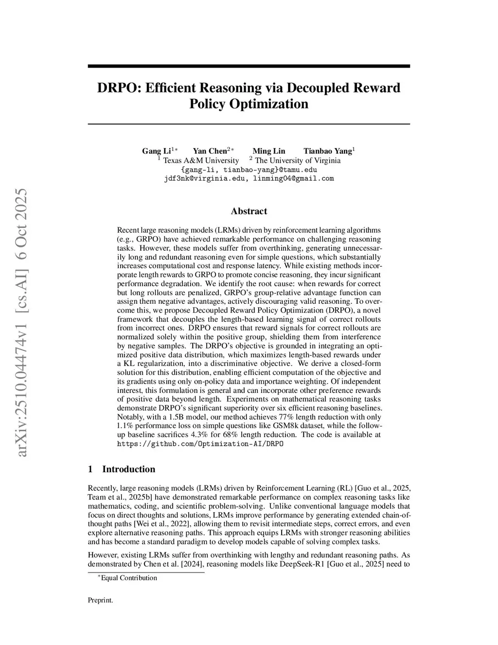 DRPO: Efficient Reasoning via Decoupled Reward Policy Optimization