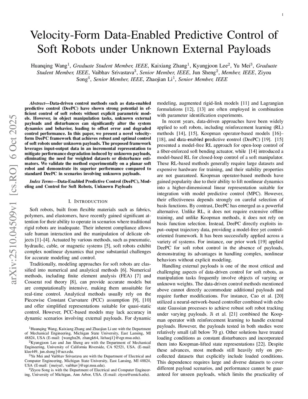 Velocity-Form Data-Enabled Predictive Control of Soft Robots under Unknown External Payloads