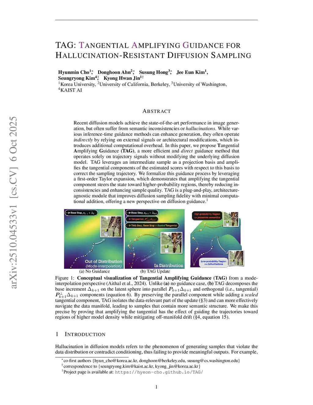 TAG:Tangential Amplifying Guidance for Hallucination-Resistant Diffusion Sampling