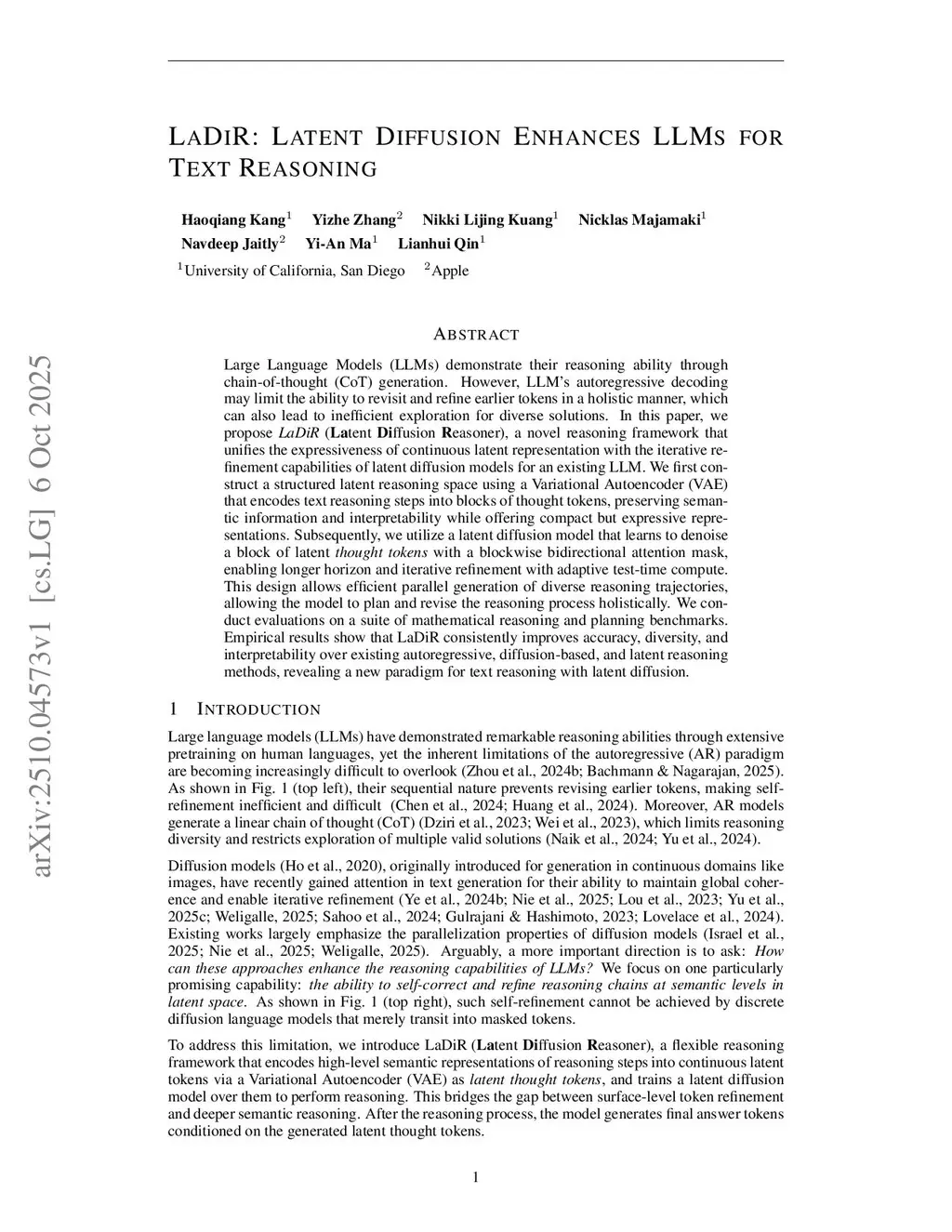LaDiR: Latent Diffusion Enhances LLMs for Text Reasoning