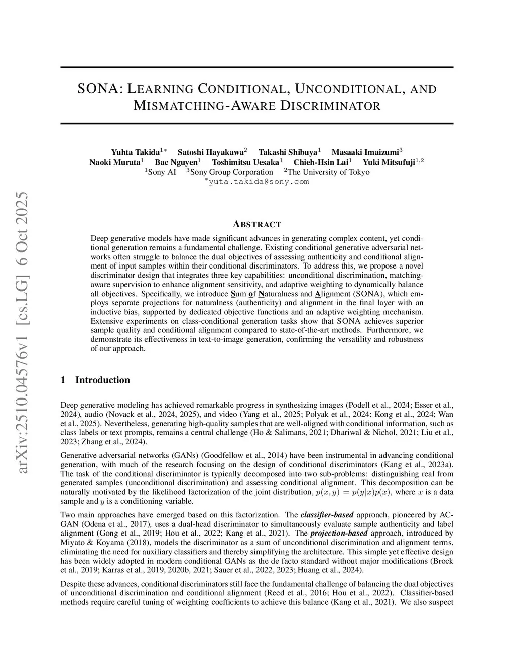 SONA: Learning Conditional, Unconditional, and Mismatching-Aware Discriminator
