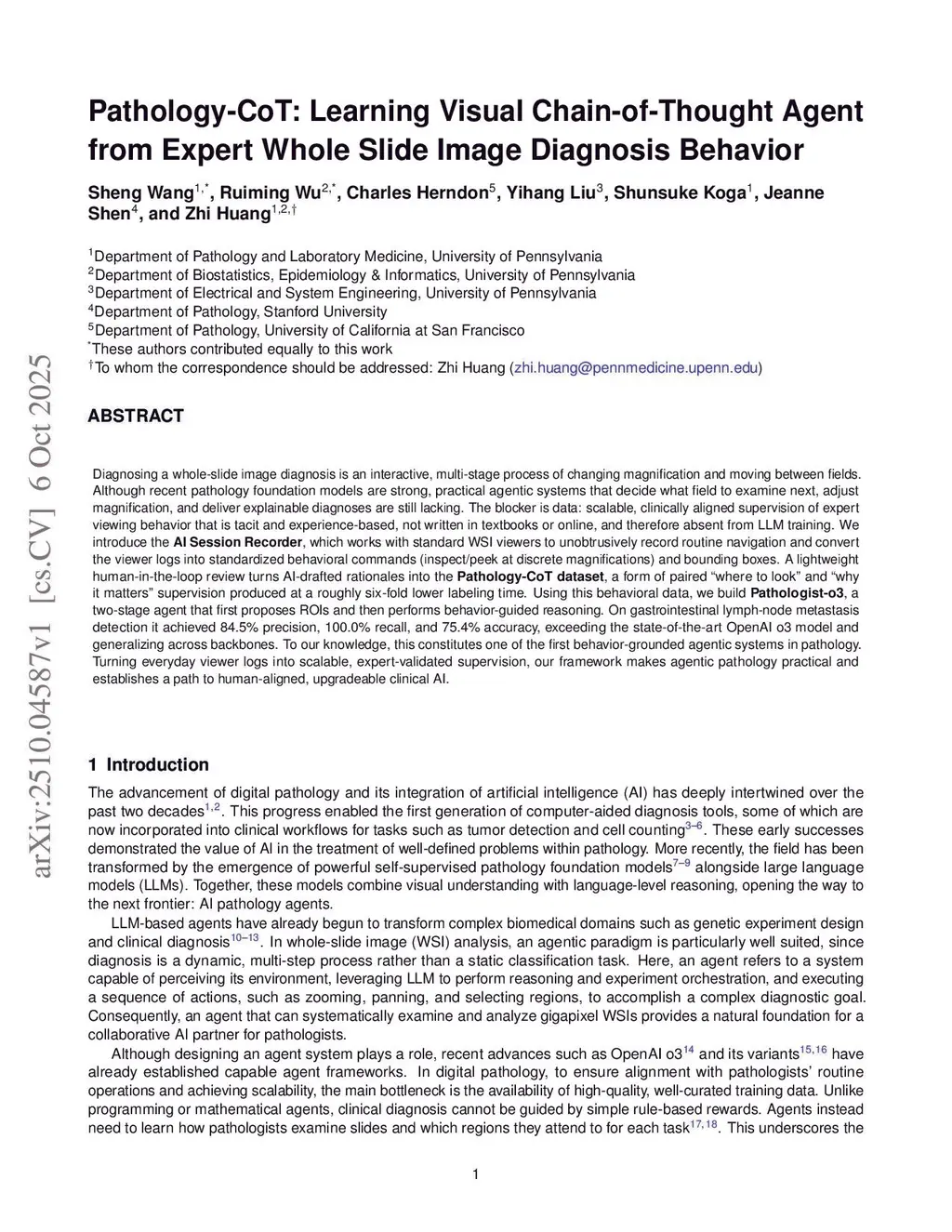 Diagnosing a whole-slide image is an interactive, multi-stage process of changing magnification and moving between fields. Although recent pathology foundation models demonstrated superior performances, practical agentic systems that decide what field to examine next, adjust magnification, and deliver explainable diagnoses are still lacking. Such limitation is largely bottlenecked by data: scalable, clinically aligned supervision of expert viewing behavior that is tacit and experience-based, not documented in textbooks or internet, and therefore absent from LLM training. Here we introduce a framework designed to address this challenge through three key breakthroughs. First, the AI Session Recorder seamlessly integrates with standard whole-slide image viewers to unobtrusively record routine navigation and convert the viewer logs into standardized behavioral commands and bounding boxes. Second, a lightweight human-in-the-loop review turns AI-drafted rationales for behavioral commands into the Pathology-CoT dataset, a form of paired "where to look" and "why it matters", enabling six-fold faster labeling compared to manual constructing such Chain-of-Thought dataset. Using this behavioral data, we build Pathology-o3, a two-stage agent that first proposes important ROIs and then performs behavior-guided reasoning. On the gastrointestinal lymph-node metastasis detection task, our method achieved 100 recall on the internal validation from Stanford Medicine and 97.6 recall on an independent external validation from Sweden, exceeding the state-of-the-art OpenAI o3 model and generalizing across backbones. To our knowledge, Pathology-CoT constitutes one of the first behavior-grounded agentic systems in pathology. Turning everyday viewer logs into scalable, expert-validated supervision, our framework makes agentic pathology practical and establishes a path to human-aligned, upgradeable clinical AI.