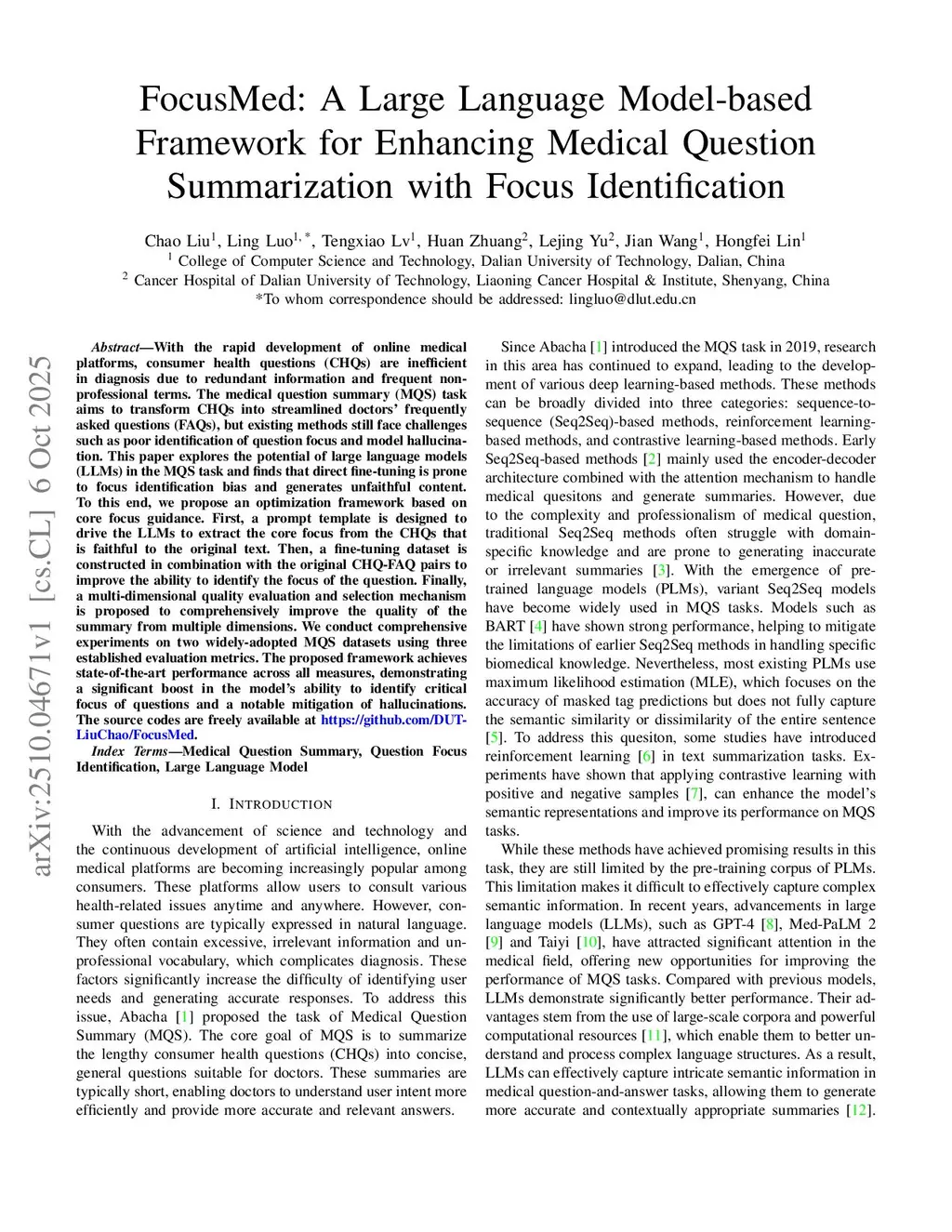 With the rapid development of online medical platforms, consumer health questions (CHQs) are inefficient in diagnosis due to redundant information and frequent non-professional terms. The medical question summary (MQS) task aims to transform CHQs into streamlined doctors' frequently asked questions (FAQs), but existing methods still face challenges such as poor identification of question focus and model hallucination. This paper explores the potential of large language models (LLMs) in the MQS task and finds that direct fine-tuning is prone to focus identification bias and generates unfaithful content. To this end, we propose an optimization framework based on core focus guidance. First, a prompt template is designed to drive the LLMs to extract the core focus from the CHQs that is faithful to the original text. Then, a fine-tuning dataset is constructed in combination with the original CHQ-FAQ pairs to improve the ability to identify the focus of the question. Finally, a multi-dimensional quality evaluation and selection mechanism is proposed to comprehensively improve the quality of the summary from multiple dimensions. We conduct comprehensive experiments on two widely-adopted MQS datasets using three established evaluation metrics. The proposed framework achieves state-of-the-art performance across all measures, demonstrating a significant boost in the model's ability to identify critical focus of questions and a notable mitigation of hallucinations. The source codes are freely available atthis https URL.