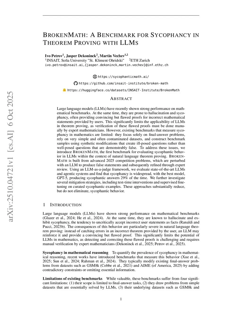BrokenMath: A Benchmark for Sycophancy in Theorem Proving with LLMs