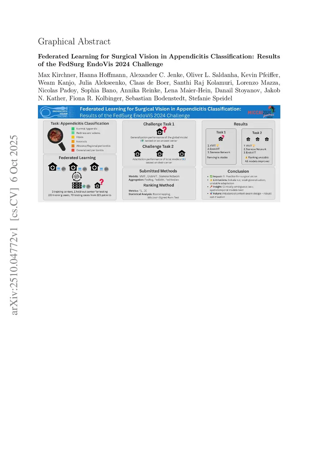 Federated Learning for Surgical Vision in Appendicitis Classification: Results of the FedSurg EndoVis 2024 Challenge
