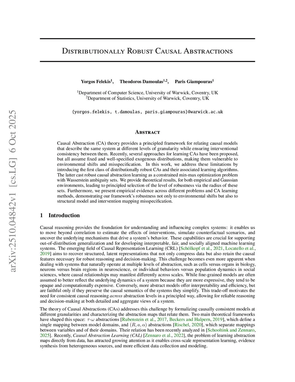 Causal Abstraction (CA) theory provides a principled framework for relating causal models that describe the same system at different levels of granularity while ensuring interventional consistency between them. Recent methods for learning CAs, however, assume fixed and well-specified exogenous distributions, leaving them vulnerable to environmental shifts and model misspecification. In this work, we address these limitations by introducing the first class of distributionally robust CAs and their associated learning algorithms. The latter cast robust causal abstraction learning as a constrained min-max optimization problem with Wasserstein ambiguity sets. We provide theoretical guarantees for both empirical and Gaussian environments, enabling principled selection of ambiguity set radii and establish quantitative guarantees on worst-case abstraction error. Furthermore, we present empirical evidence across different problems and CA learning methods, demonstrating our framework's robustness not only to environmental shifts but also to structural and intervention mapping misspecification.