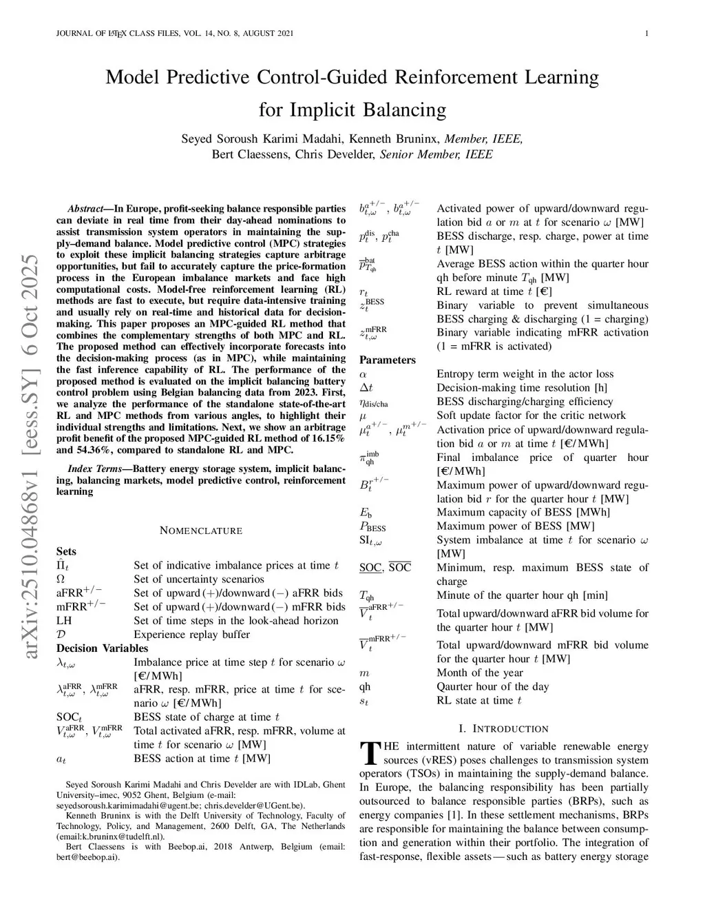 Model Predictive Control-Guided Reinforcement Learning for Implicit Balancing