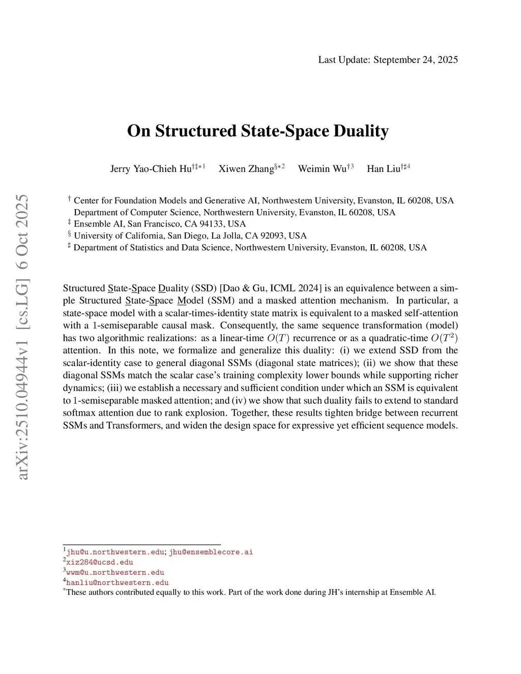 On Structured State-Space Duality