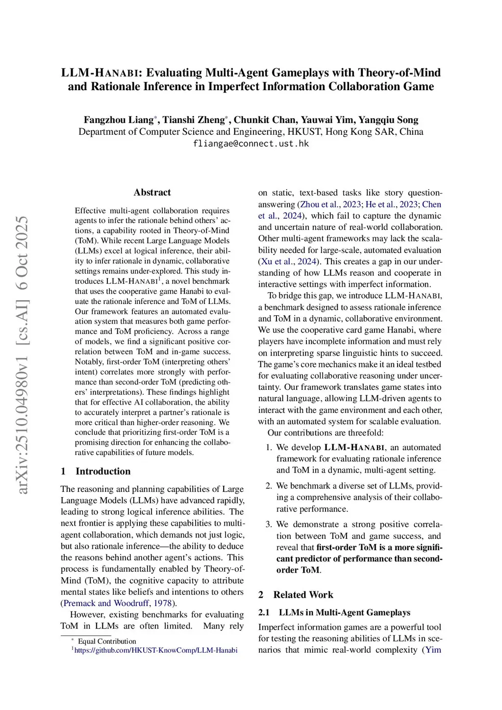LLM-Hanabi: Evaluating Multi-Agent Gameplays with Theory-of-Mind and Rationale Inference in Imperfect Information Collaboration Game