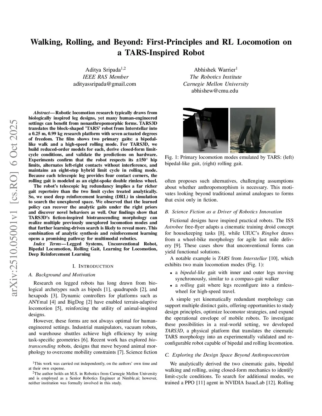 Walking, Rolling, and Beyond: First-Principles and RL Locomotion on a TARS-Inspired Robot