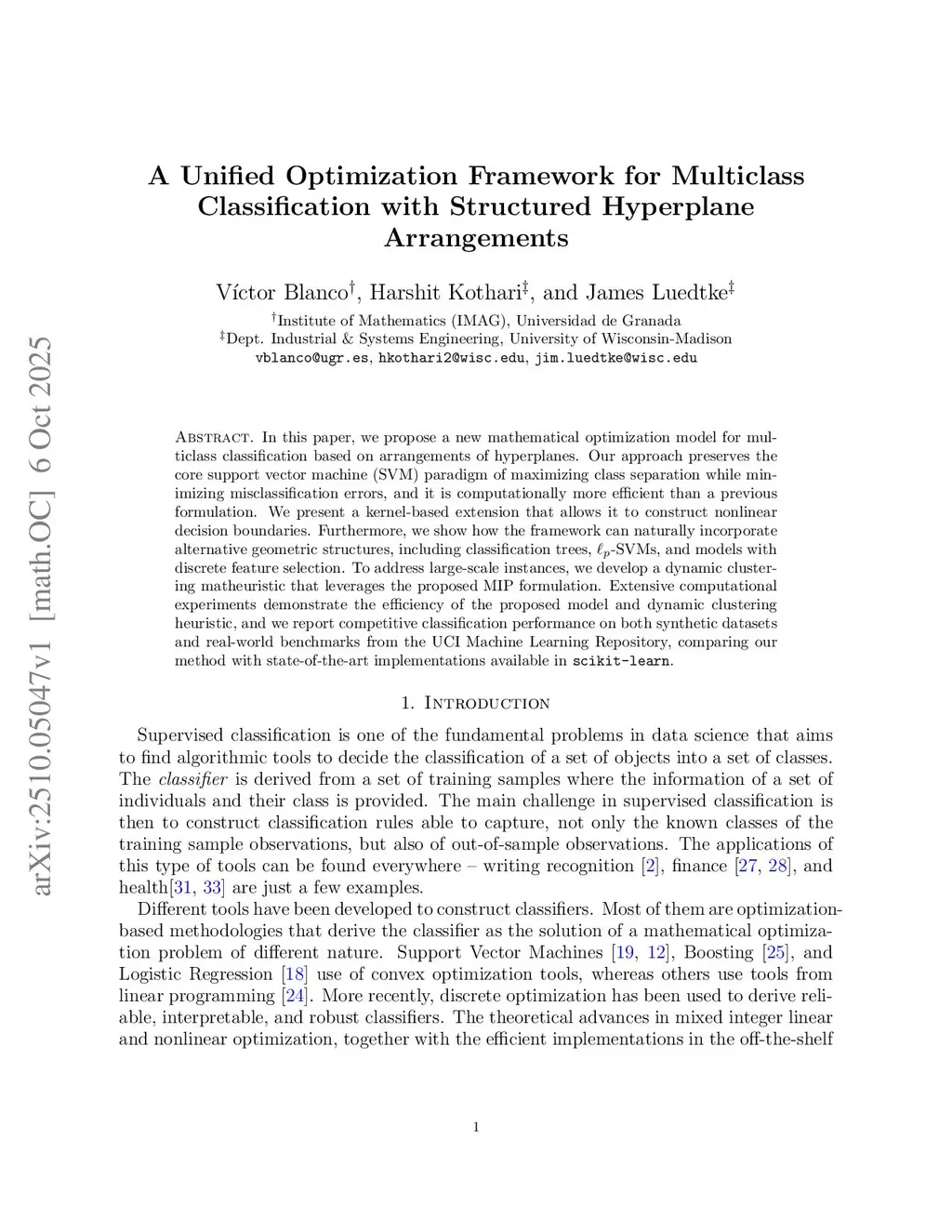A Unified Optimization Framework for Multiclass Classification with Structured Hyperplane Arrangements