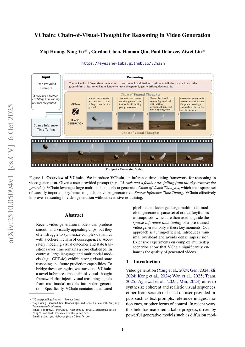 VChain: Chain-of-Visual-Thought for Reasoning in Video Generation