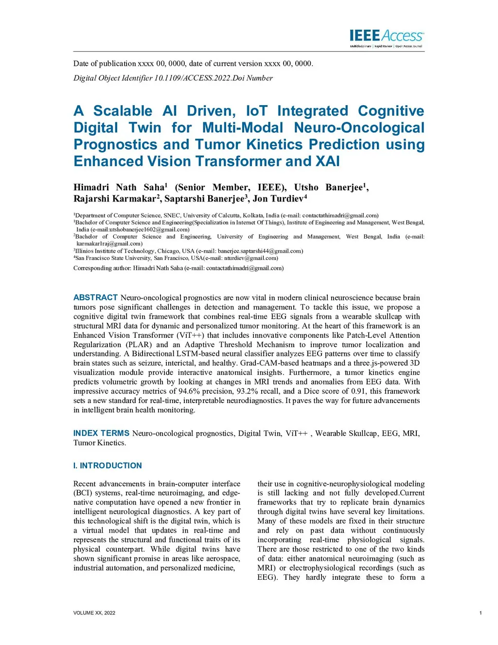 A Scalable AI Driven, IoT Integrated Cognitive Digital Twin for Multi-Modal Neuro-Oncological Prognostics and Tumor Kinetics Prediction using Enhanced Vision Transformer and XAI