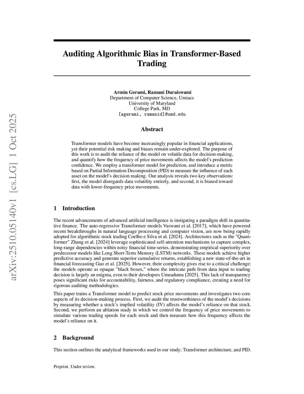 Auditing Algorithmic Bias in Transformer-Based Trading