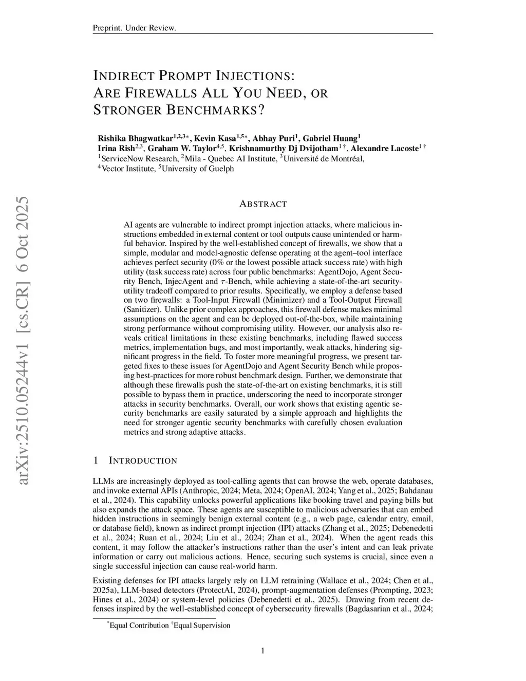 Indirect Prompt Injections: Are Firewalls All You Need, or Stronger Benchmarks?