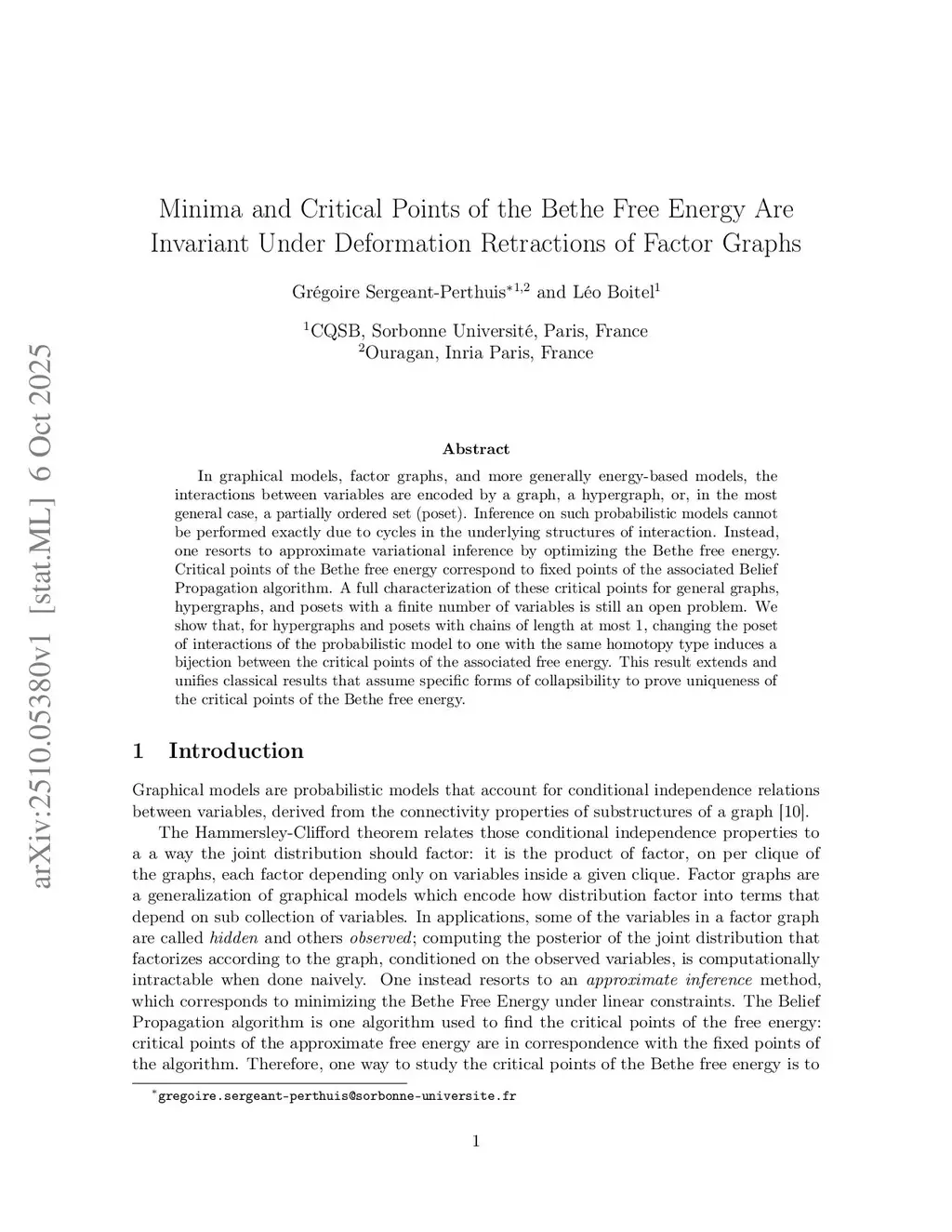 In graphical models, factor graphs, and more generally energy-based models, the interactions between variables are encoded by a graph, a hypergraph, or, in the most general case, a partially ordered set (poset). Inference on such probabilistic models cannot be performed exactly due to cycles in the underlying structures of interaction. Instead, one resorts to approximate variational inference by optimizing the Bethe free energy. Critical points of the Bethe free energy correspond to fixed points of the associated Belief Propagation algorithm. A full characterization of these critical points for general graphs, hypergraphs, and posets with a finite number of variables is still an open problem. We show that, for hypergraphs and posets with chains of length at most 1, changing the poset of interactions of the probabilistic model to one with the same homotopy type induces a bijection between the critical points of the associated free energy. This result extends and unifies classical results that assume specific forms of collapsibility to prove uniqueness of the critical points of the Bethe free energy.