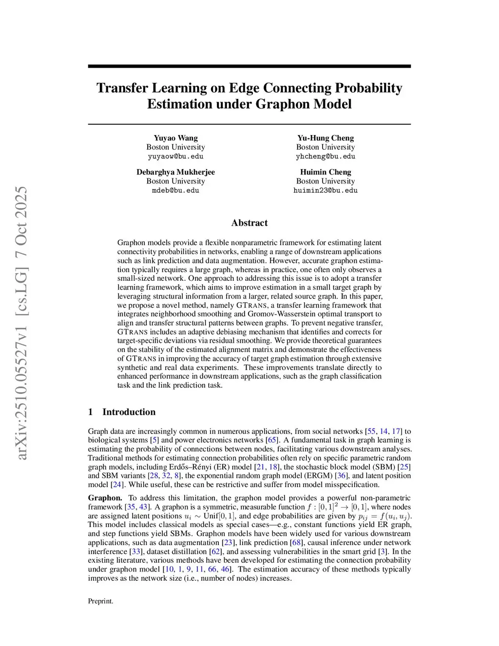 Transfer Learning on Edge Connecting Probability Estimation under Graphon Model