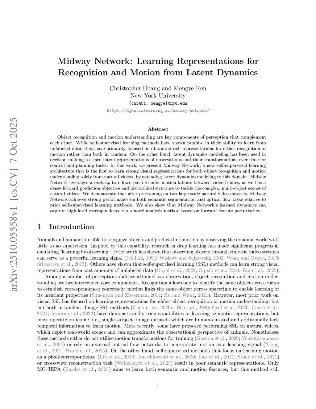 Midway Network: Learning Representations for Recognition and Motion from Latent Dynamics