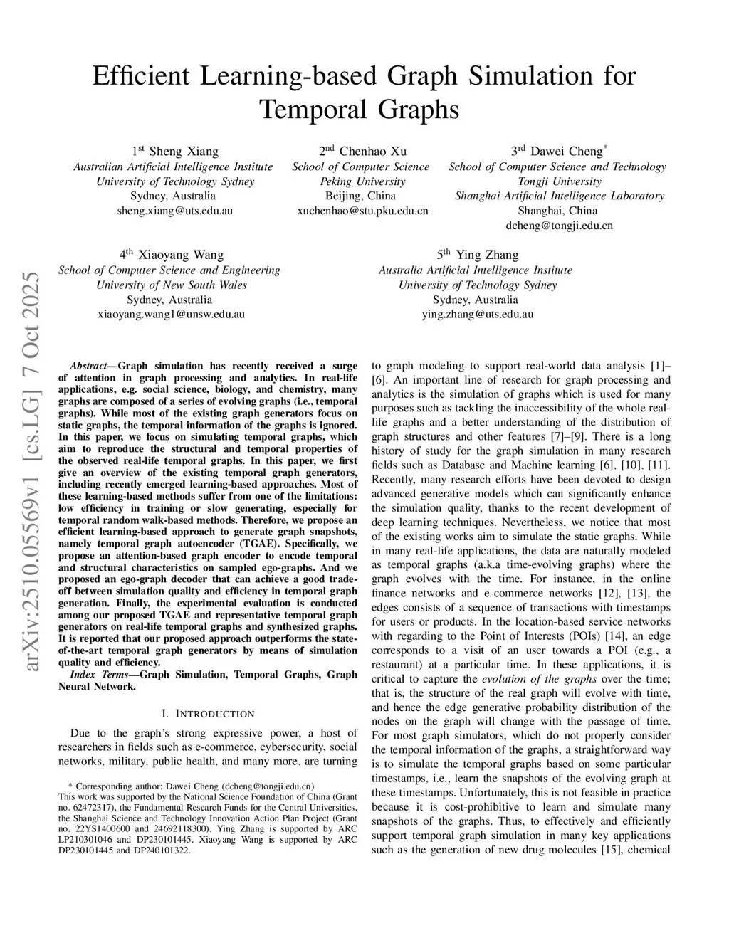 Graph simulation has recently received a surge of attention in graph processing and analytics. In real-life applications, e.g. social science, biology, and chemistry, many graphs are composed of a series of evolving graphs (i.e., temporal graphs). While most of the existing graph generators focus on static graphs, the temporal information of the graphs is ignored. In this paper, we focus on simulating temporal graphs, which aim to reproduce the structural and temporal properties of the observed real-life temporal graphs. In this paper, we first give an overview of the existing temporal graph generators, including recently emerged learning-based approaches. Most of these learning-based methods suffer from one of the limitations: low efficiency in training or slow generating, especially for temporal random walk-based methods. Therefore, we propose an efficient learning-based approach to generate graph snapshots, namely temporal graph autoencoder (TGAE). Specifically, we propose an attention-based graph encoder to encode temporal and structural characteristics on sampled ego-graphs. And we proposed an ego-graph decoder that can achieve a good trade-off between simulation quality and efficiency in temporal graph generation. Finally, the experimental evaluation is conducted among our proposed TGAE and representative temporal graph generators on real-life temporal graphs and synthesized graphs. It is reported that our proposed approach outperforms the state-of-the-art temporal graph generators by means of simulation quality and efficiency.