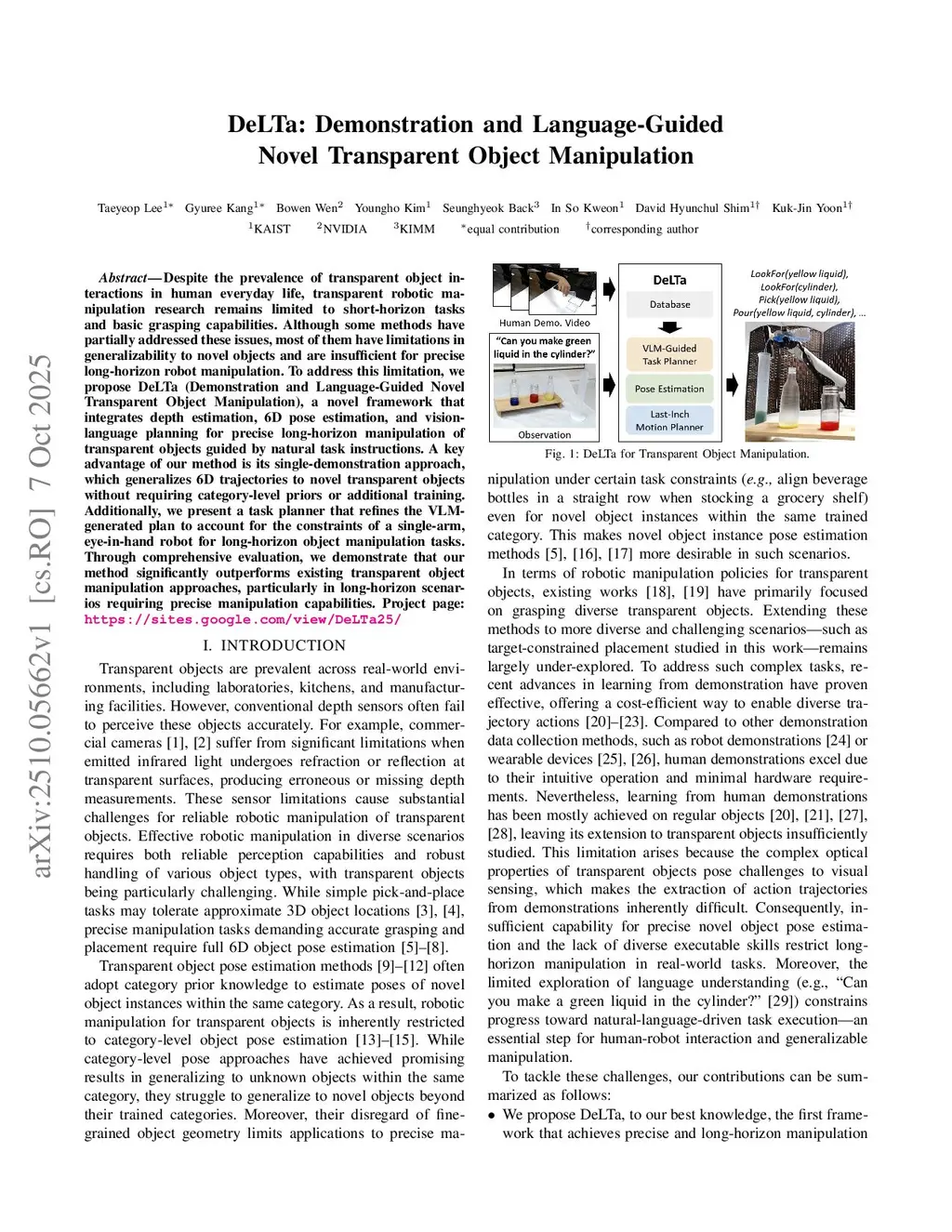 DeLTa: Demonstration and Language-Guided Novel Transparent Object Manipulation
