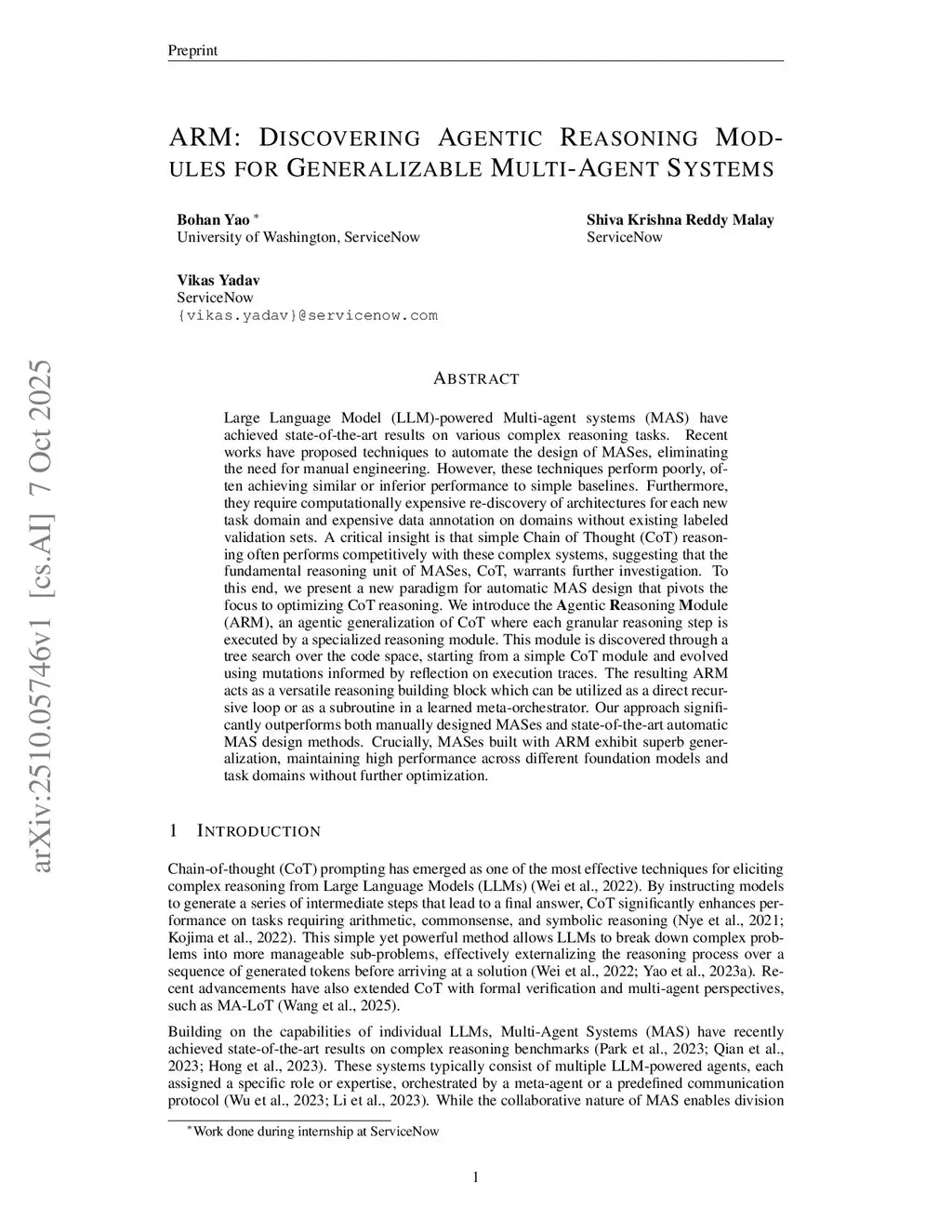 ARM: Discovering Agentic Reasoning Modules for Generalizable Multi-Agent Systems