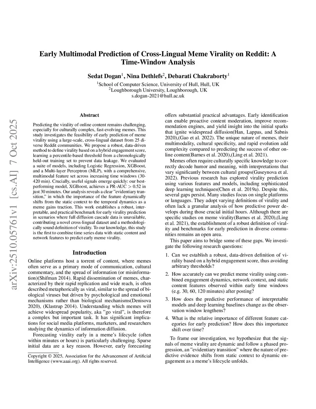 Memes are a central part of online culture, yet their virality remains difficult to predict, especially in cross-lingual settings. We present a large-scale, time-series dataset of 46,578 Reddit memes collected from 25 meme-centric subreddits across eight language groups, with more than one million engagement tracking points. We propose a data-driven definition of virality based on a Hybrid Score that normalises engagement by community size and integrates dynamic features such as velocity and acceleration. This approach directly addresses the field's reliance on static, simple volume-based thresholds with arbitrary cut-offs. Building on this target, we construct a multimodal feature set that combines Visual, Textual, Contextual, Network, and Temporal signals, including structured annotations from a multimodal LLM to scale cross-lingual content labelling in a consistent way. We benchmark interpretable baselines (XGBoost, MLP) against end-to-end deep models (BERT, InceptionV3, CLIP) across early observation windows from 30 to 420 minutes. Our best model, a multimodal XGBoost classifier, achieves a PR AUC of 0.43 at 30 minutes and 0.80 at 420 minutes, indicating that early prediction of meme virality is feasible even under strong class imbalance. The results reveal a clear Content Ceiling, where content-only and deep multimodal baselines plateau at low PR AUC, while structural Network and Temporal features are necessary to surpass this limit. A SHAP-based temporal analysis further uncovers an evidentiary transition, where early predictions are dominated by network priors (author and community context), and later predictions increasingly rely on temporal dynamics (velocity, acceleration) as engagement accumulates. Overall, we reframe meme virality as a dynamic, path-dependent process governed by exposure and early interaction patterns rather than by intrinsic content alone.